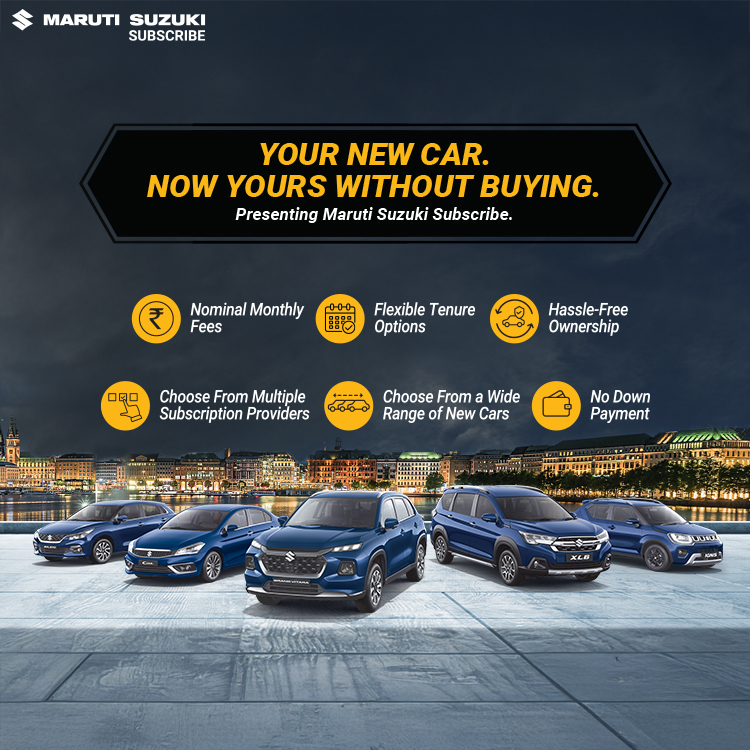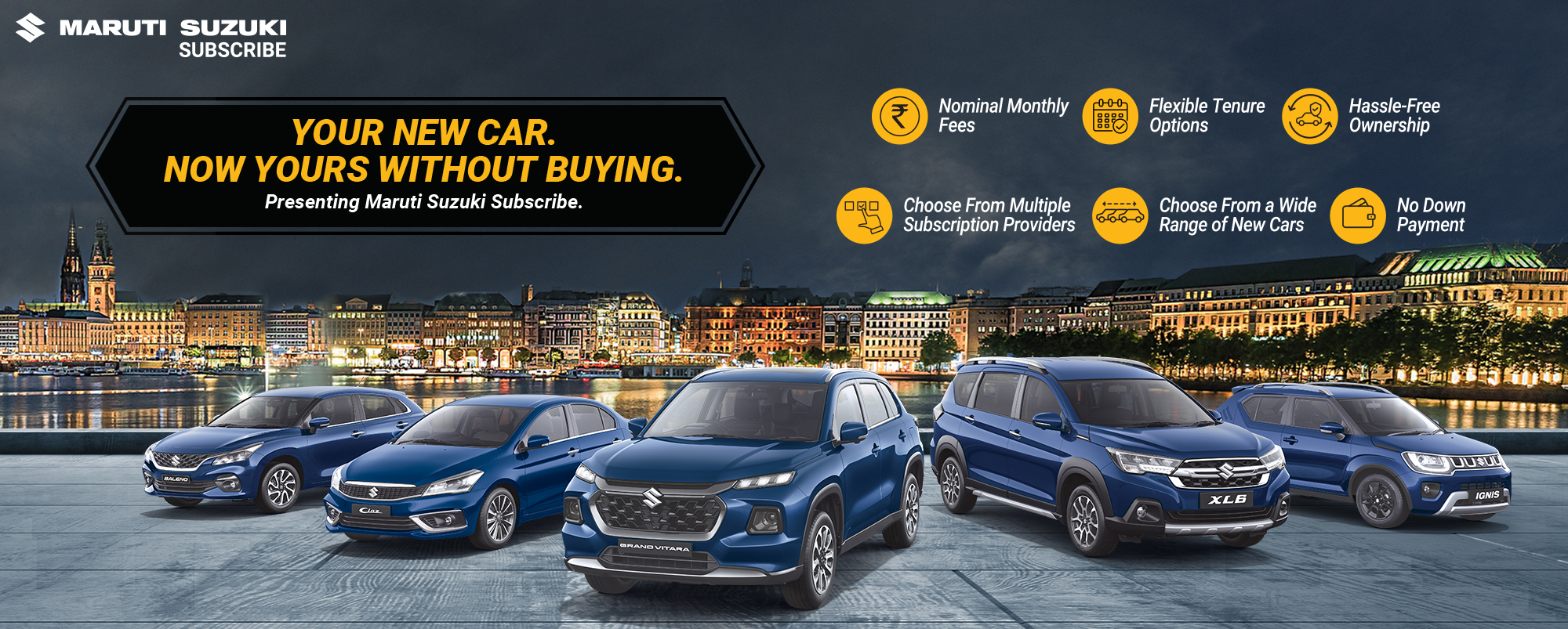 Located in Gandhinagar, Nanda Automobiles offers a plethora of options of Nexa cars for Maruti Suzuki Subscribe. You can choose your desired Maruti Suzuki car and drive it home at nominal monthly fees for a variety of flexible tenure periods. Whether you prefer Hatchback, Sedan, SUV or even MUV you are sure to find it at Nanda Automobiles, with an easy Maruti Suzuki Subscribe plan.